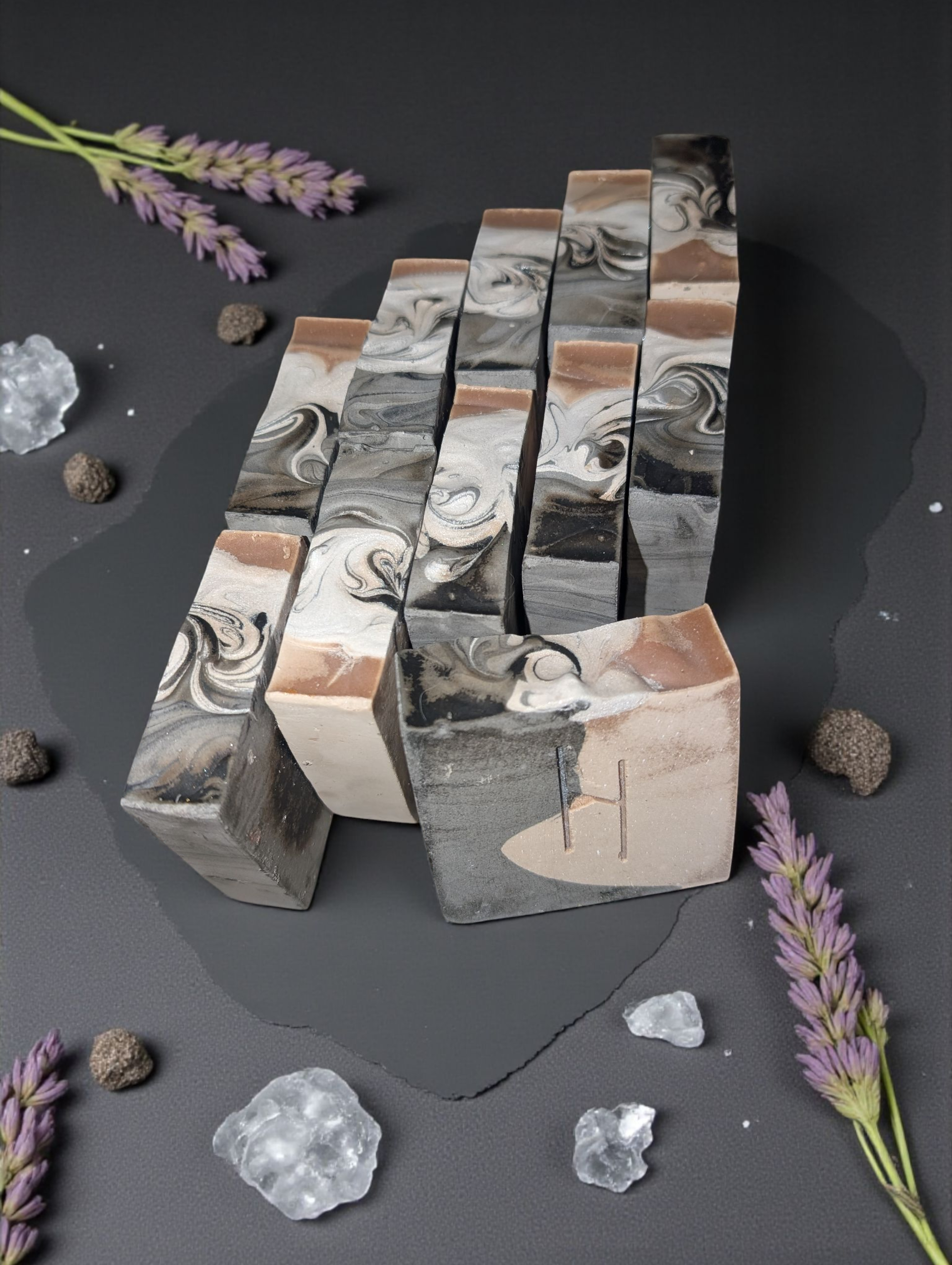From the Norse sagas comes Hel, half in shadow, half in light—ruling over the quiet resting place of souls. This soap mirrors her dual nature with a striking swirl of dark and pale, touched by cool, clean scents and grounding herbs.