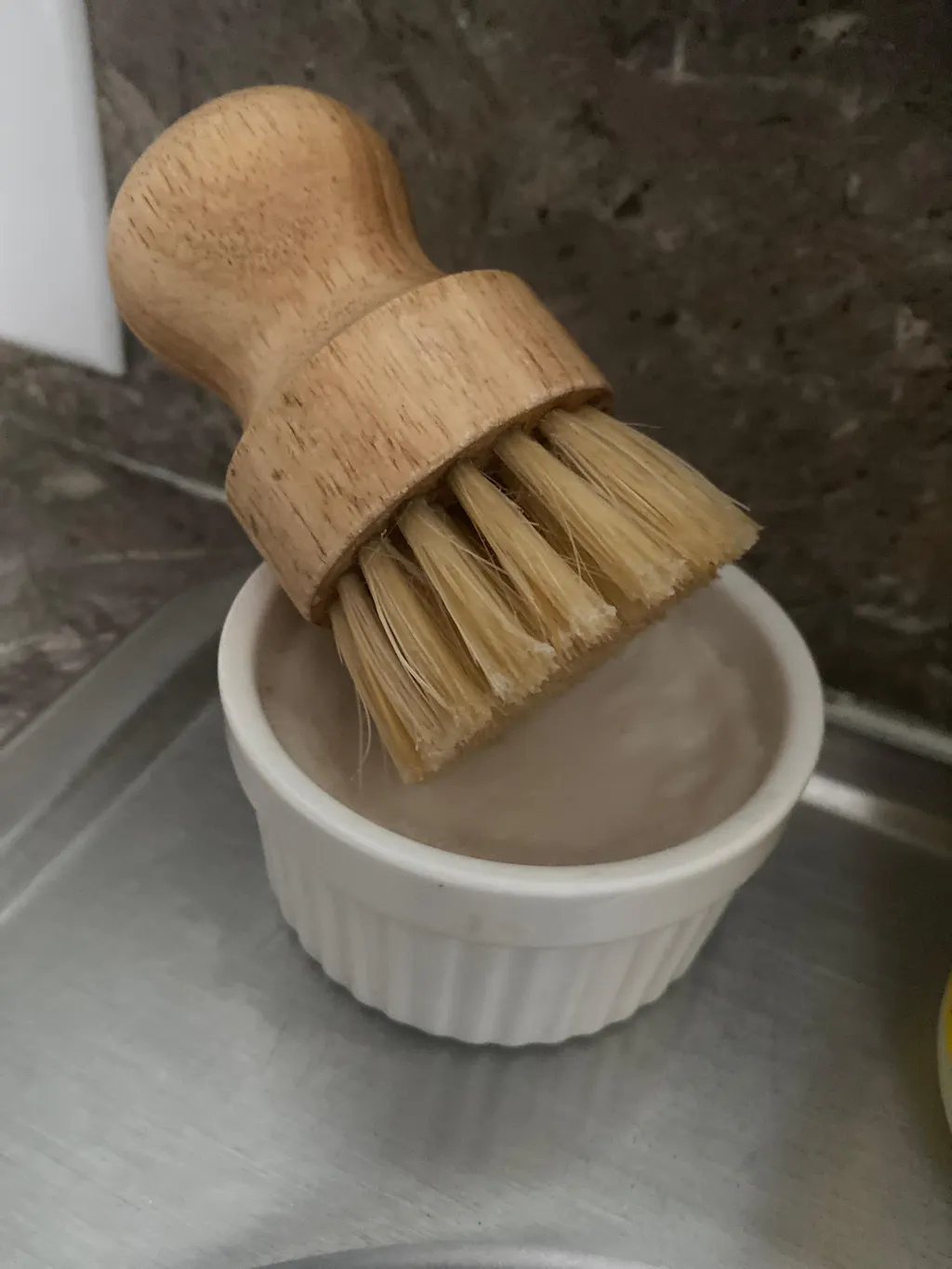 Each bar comes poured into a 4 oz reusable ceramic ramekin, paired with a sturdy dish brush to make every sink session feel a little more joyful.